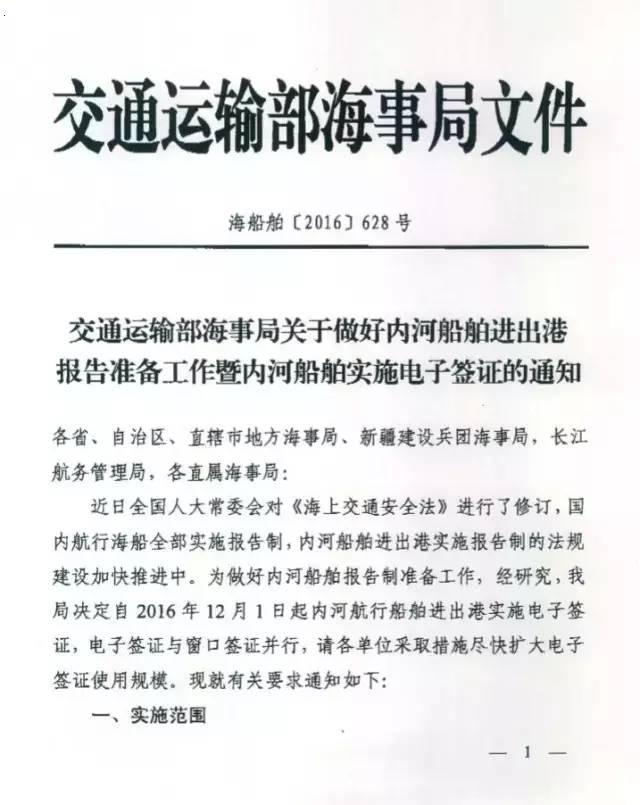 12月1日起,内河船舶于全面实施进出港电子签证!