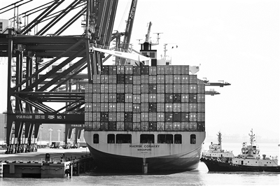 12月3日下午,“马士基科纳克里”号集装箱轮缓缓靠上宁波舟山港大浦口集装箱码头,将在这里进行1103个自然箱的装卸作业。